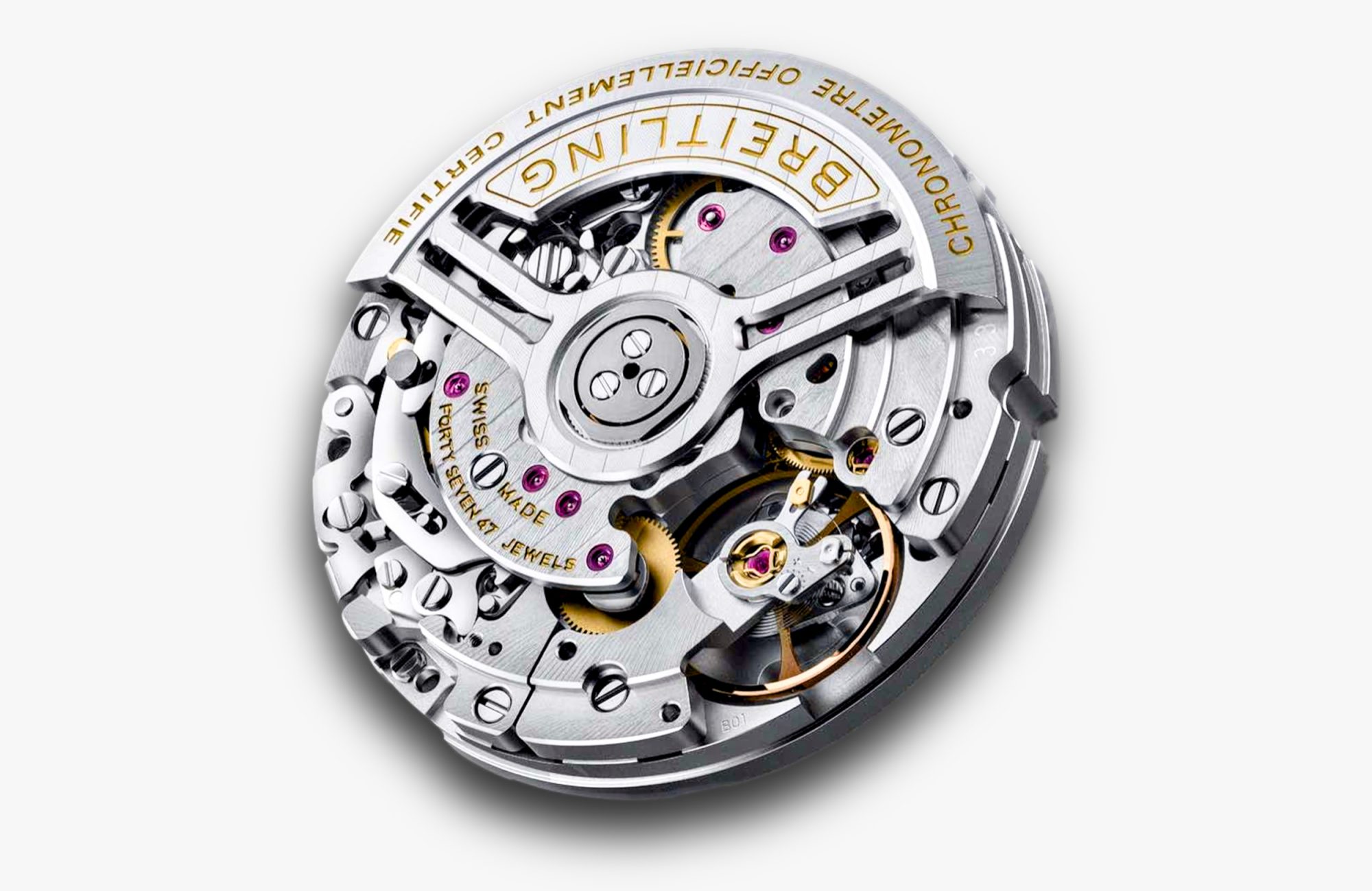 Au cœur de la Navitimer bat un mouvement chronographe de haute précision. Les modèles récents sont équipés du calibre manufacture Breitling 01, un mouvement automatique visible à travers le fond saphir, offrant une réserve de marche de 70 heures. Certifié chronomètre par le COSC, il garantit une précision quotidienne exemplaire.