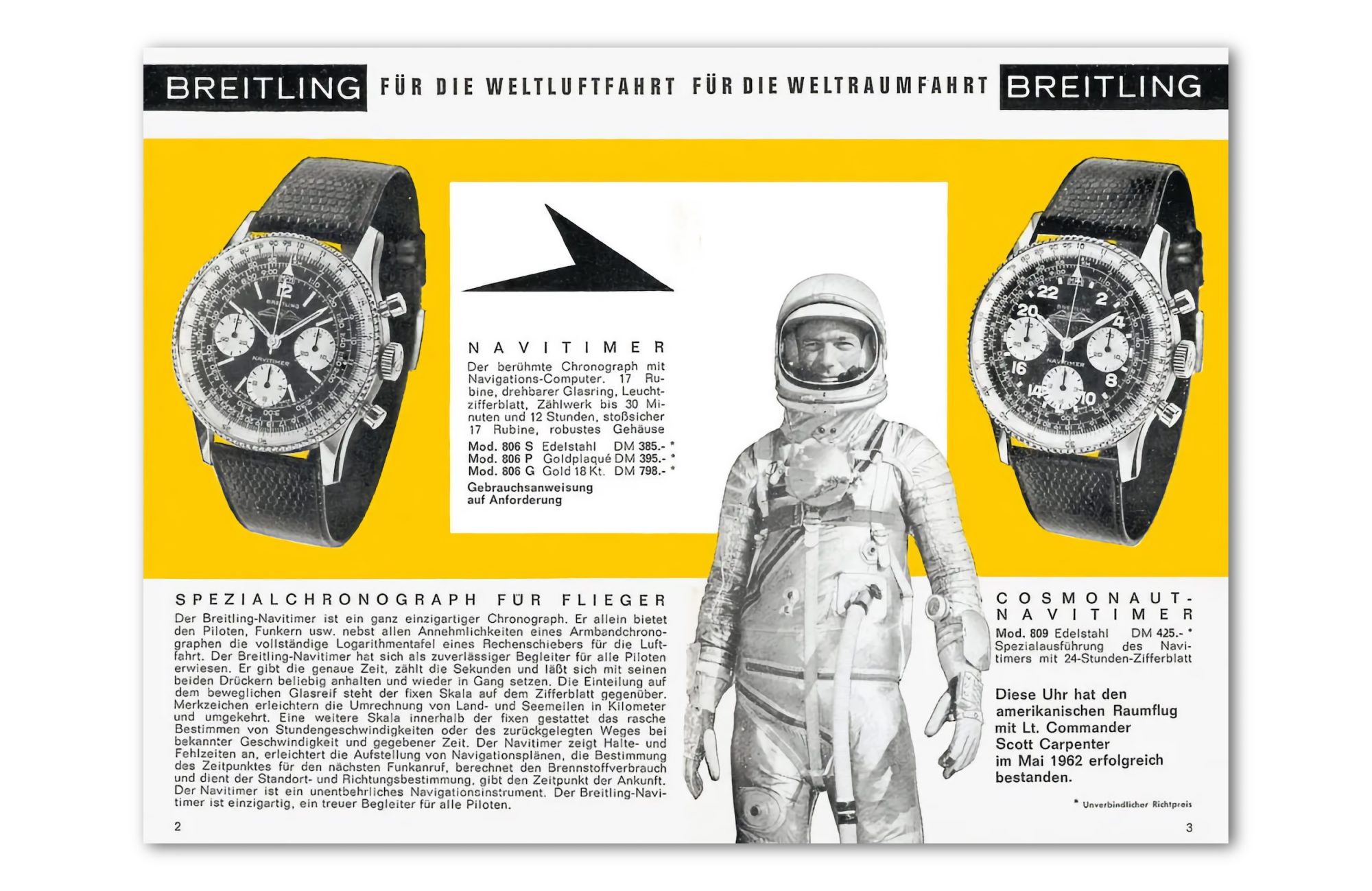 Le 24 mai 1962, Carpenter effectue trois orbites autour de la Terre lors d’une mission d’environ cinq heures, avec sa Navitimer au poignet. Cette mission fait de la Navitimer la première montre-bracelet suisse à voyager dans l’espace (une distinction importante, John Glenn ayant porté un chronographe de poche Heuer lors de sa mission précédente).