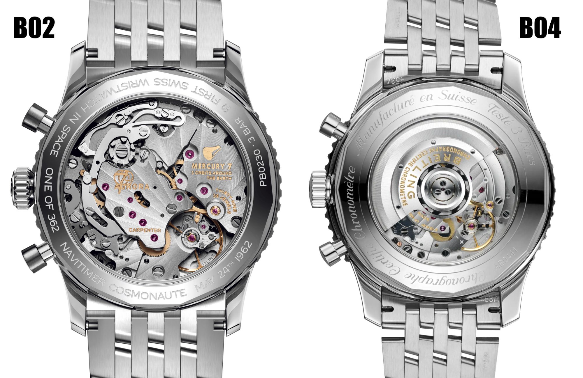 Ce mouvement a depuis donné naissance à plusieurs variantes : le Calibre B02 (identique au B01 mais à remontage manuel, utilisé notamment dans le Cosmonaute moderne), le B03 avec fonction rattrapante, et le B04 avec indication GMT.