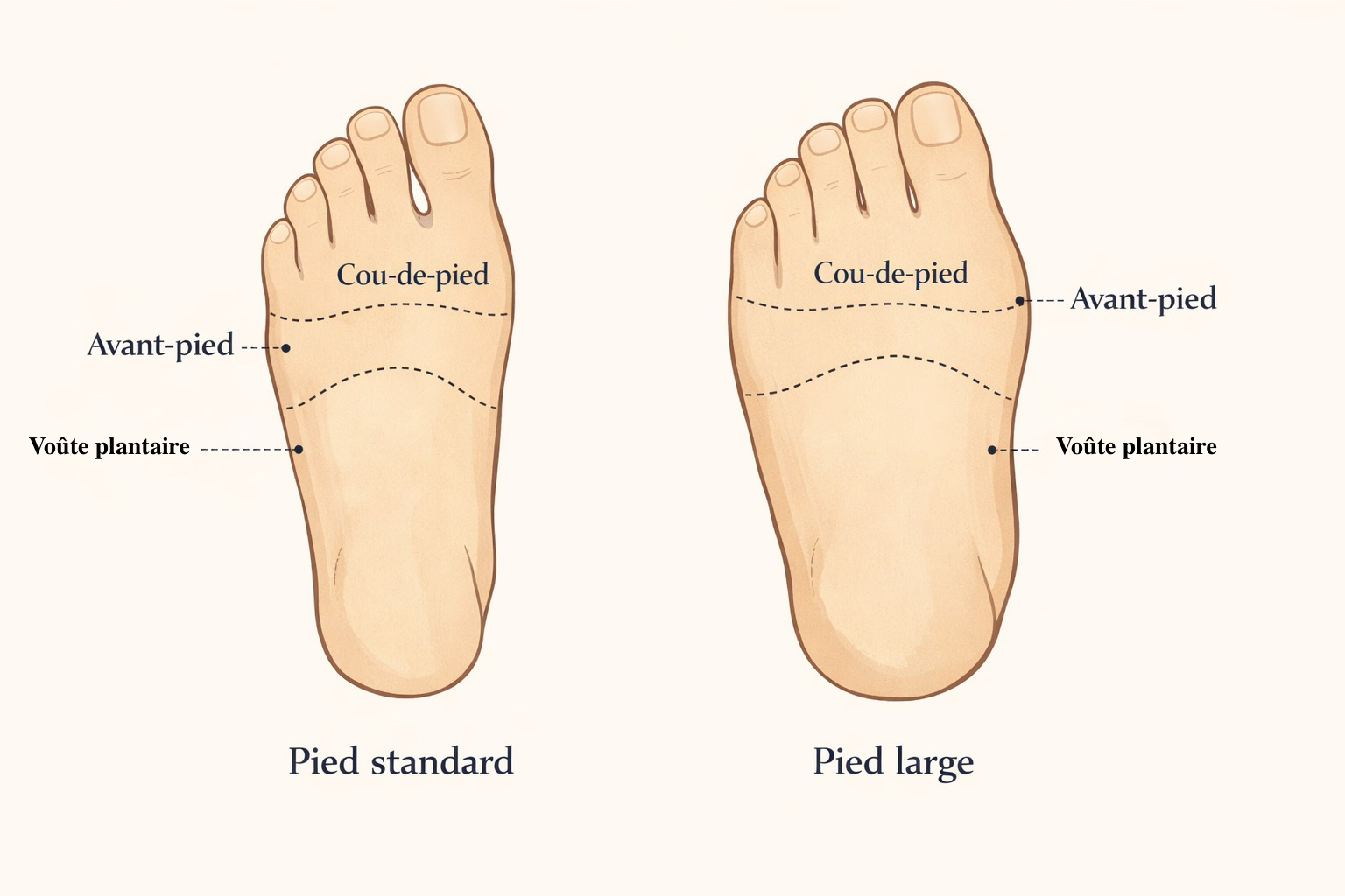 Pieds larges ou étroits