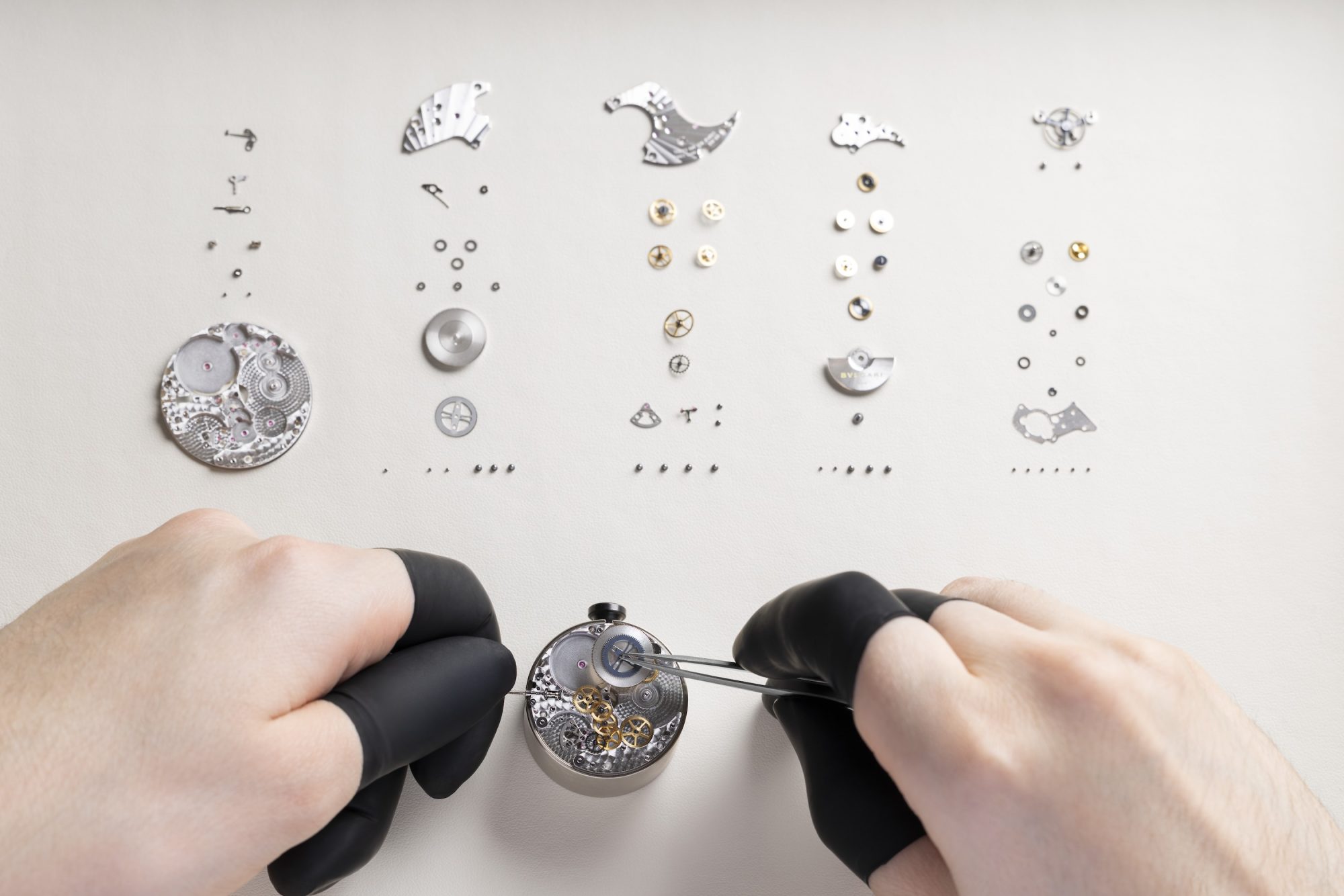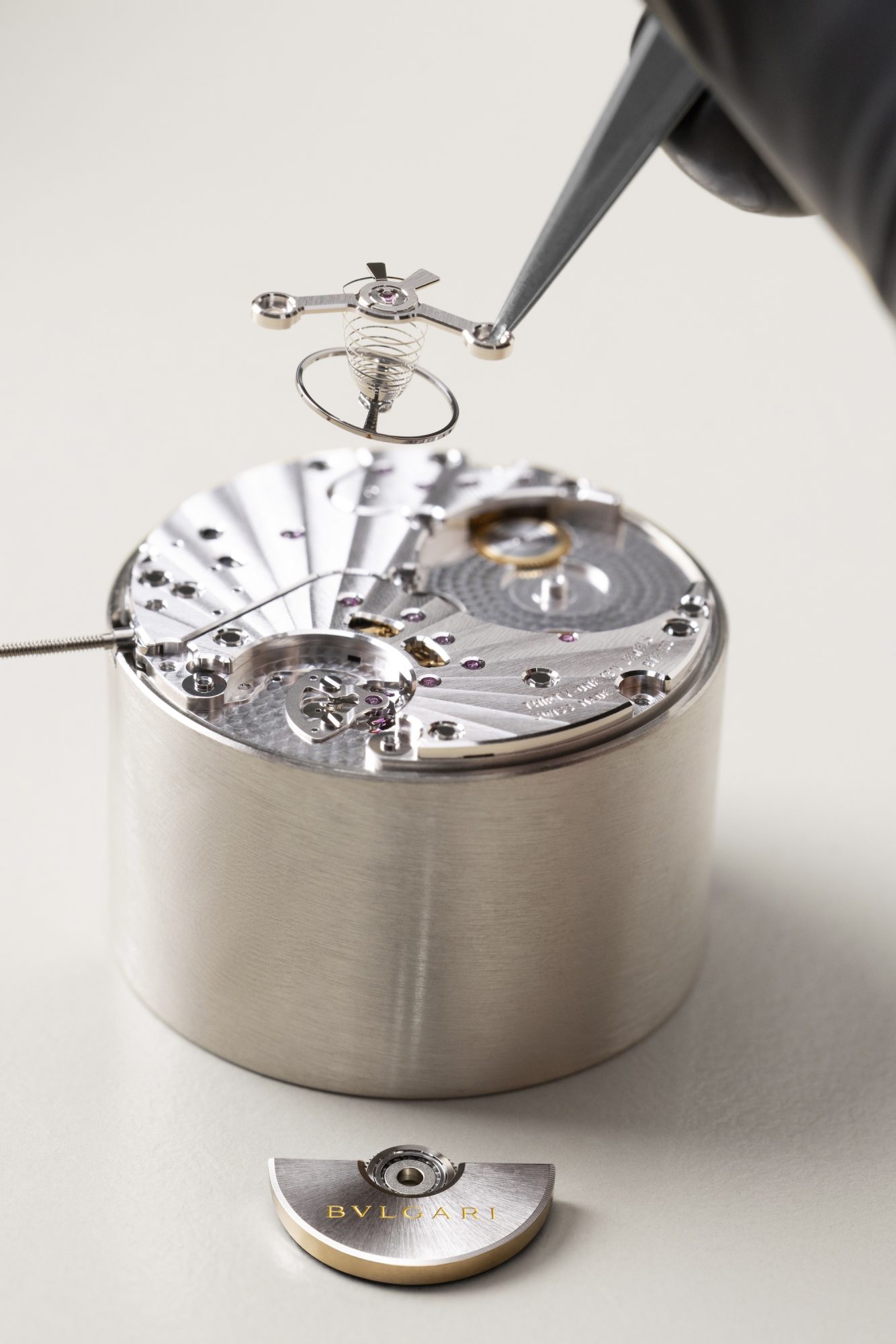 - Micro-rotor : petit rotor (ci-dessous gravé « Bvlgari ») intégré dans le plan du mouvement, permettant une épaisseur réduite. Utilisé par Bvlgari, Chopard, Piaget pour les montres extra-plates.