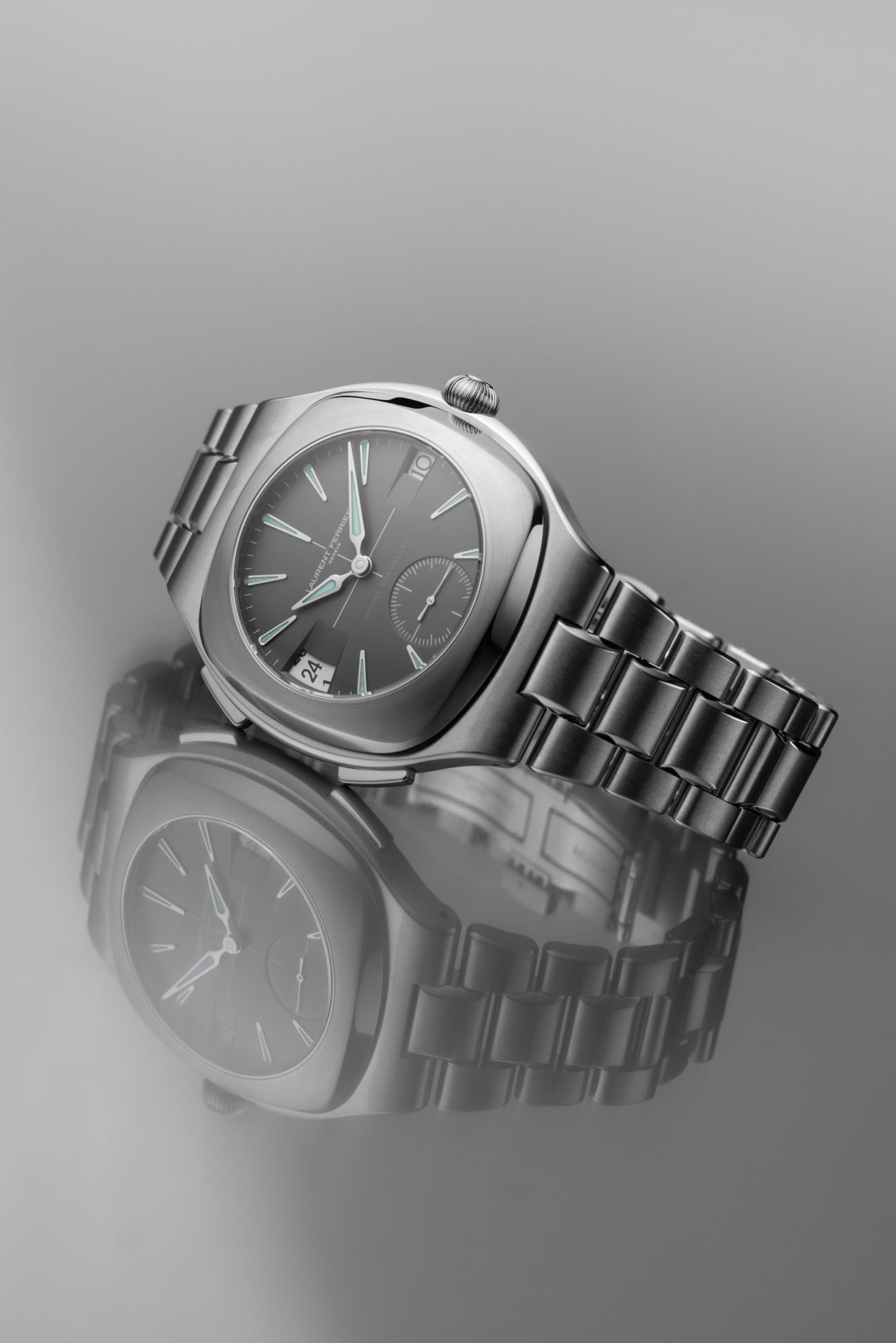 On est sur une montre sport à bracelet intégré avec un niveau de finition qui rappelle immédiatement qu’on est chez un indépendant genevois.