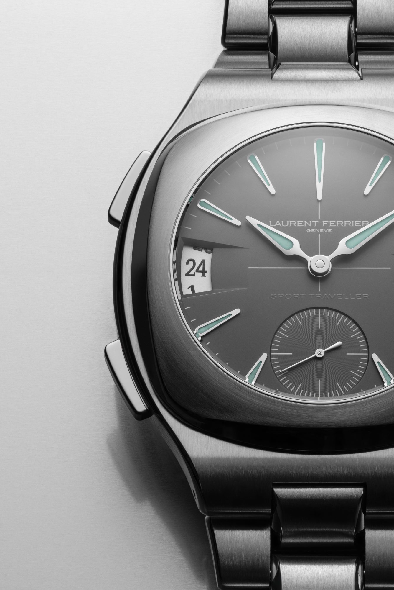 Pour comprendre ce que représente la Sport Traveller, il faut se souvenir que Laurent Ferrier a pendant longtemps été perçu comme un horloger au classicisme absolu. Ses boîtiers en forme de galet, ses cadrans très épurés purs, son excellence mécanique : tout respirait le raffinement feutré. Puis la ligne Sport est arrivée, avec la Grand Sport Tourbillon et la Sport Auto, et on a découvert un Laurent Ferrier capable de faire des montres au design plus sportif, sans rien perdre de leur élégance, et, comme toujours, de leur technicité et de leur exceptionnelle qualité de finitions. La Sport Traveller est le troisième modèle de cette ligne, et elle intègre la collection de façon permanente.