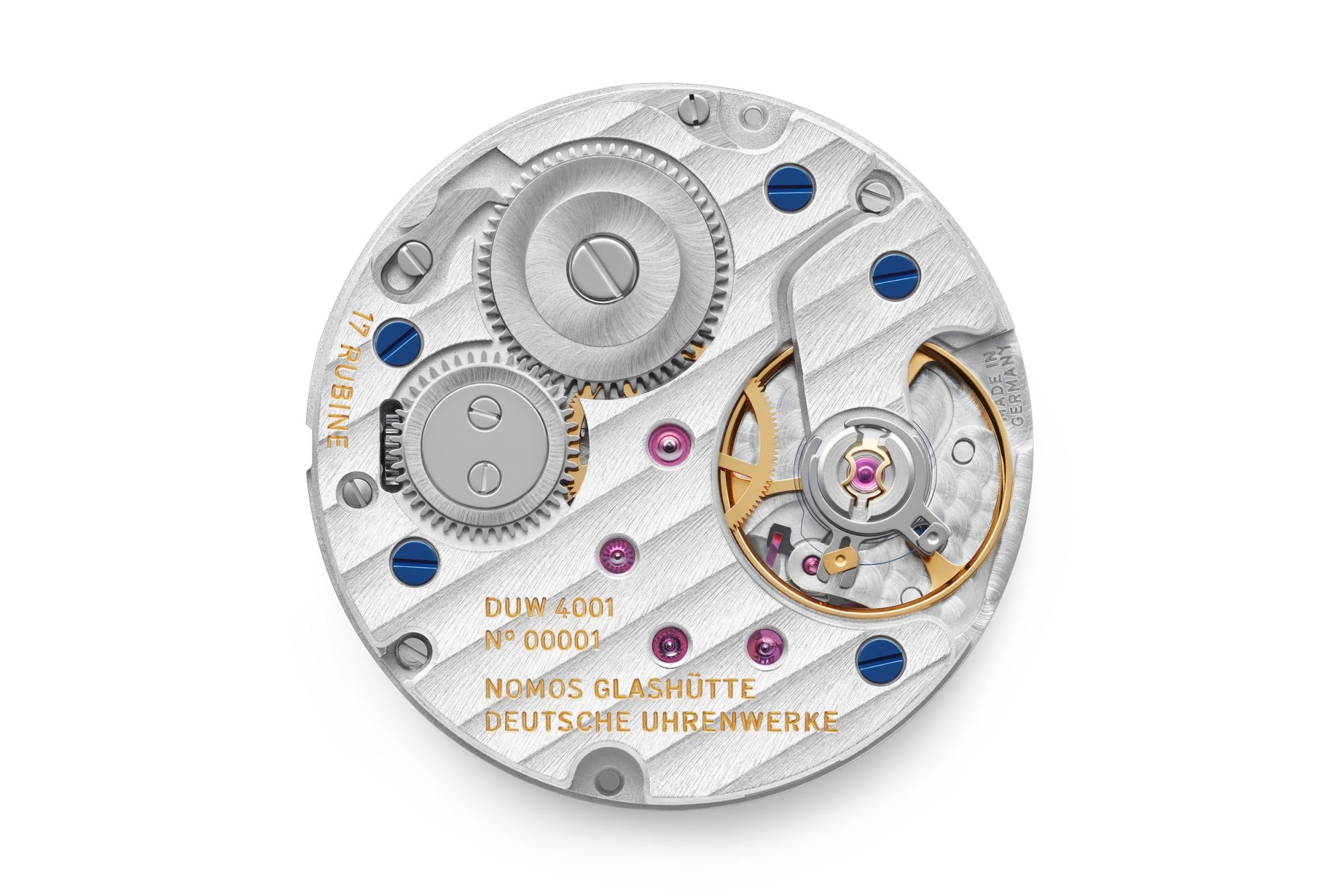 | Mouvement | DUW 4001, remontage manuel, NOMOS Swing System |