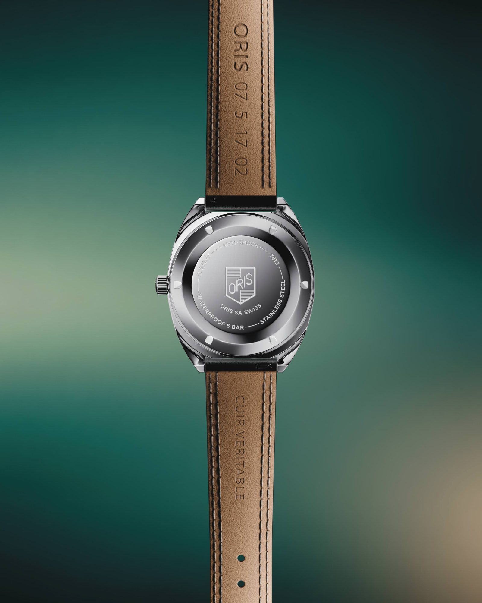Dernier détail qui fait plaisir : le fond de boîte vissé est gravé du blason Oris des années 1960. Un logo stylisé qu’on n’a pas vu depuis des décennies et qui rappelle que cette marque a plus de 120 ans d’histoire derrière elle.