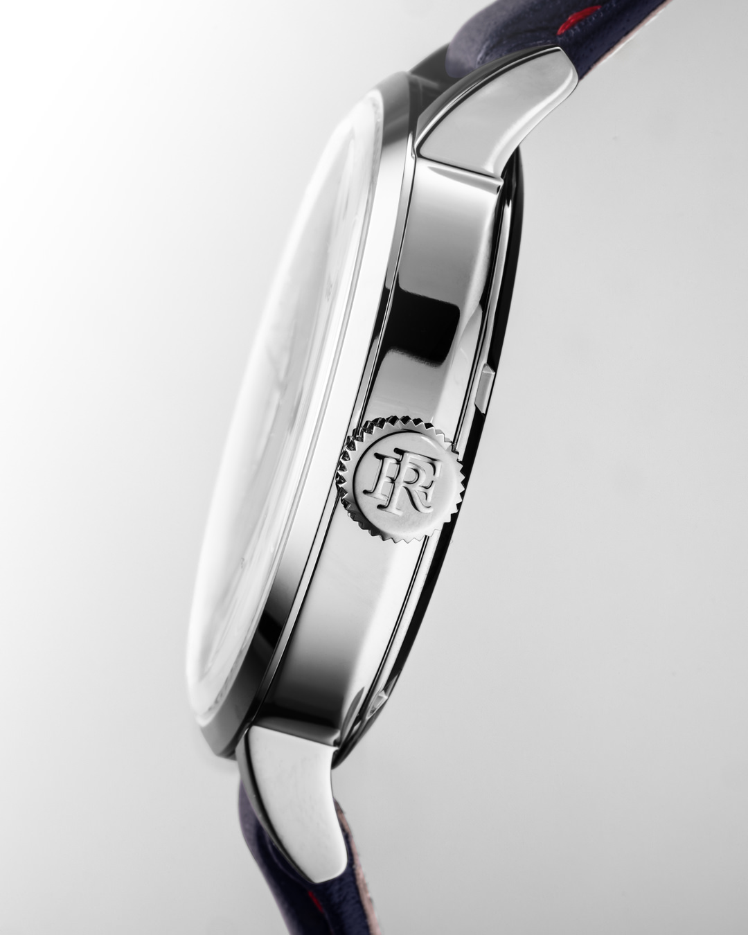- Boîtier : 39 mm, acier 316L poli, couronne avec logo « RF » en relief