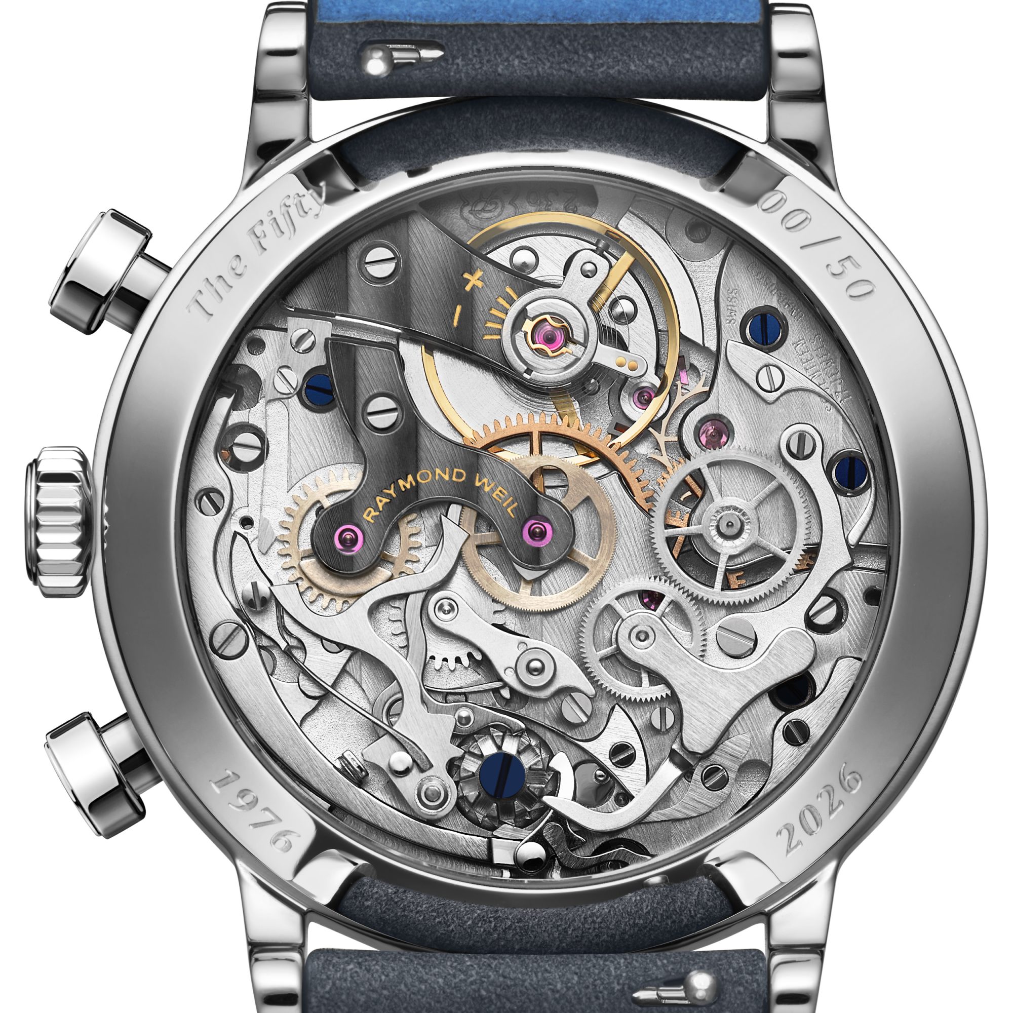 En 2026, Raymond Weil fête ses 50 ans. Un demi-siècle d’indépendance familiale dans un monde horloger où il n’est pas forcément aisé de faire bande à part en dehors des grands groupes. Pour marquer l’événement, la maison genevoise dévoile « The Fifty », un chronographe limité à 50 exemplaires, animé par un calibre historique Valjoux 23-6 restauré et décoré à la main. Cinquante ans, cinquante pièces, et un niveau de finition qu’on n’avait jusqu’alors jamais vu chez Raymond Weil.