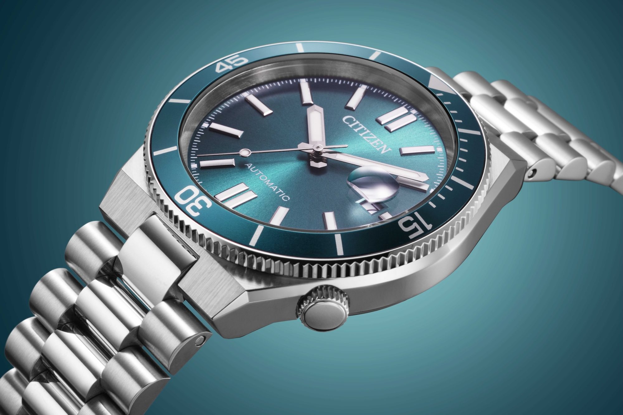 L’idée, cette fois, c’est de pousser la Tsuyosa vers le large. Pas au sens littéral (on n’est pas sur une plongeuse à 300 mètres façon Promaster), mais dans l’esprit. Citizen injecte à sa collection star un supplément d’âme maritime : lunette tournante, étanchéité doublée, palette de couleurs qui évoque davantage la Côte d’Azur que la salle de réunion. Quatre références, lancées le 26 mars 2026, à des tarifs qui restent dans l’épure de la gamme : de 329 à 359 euros.