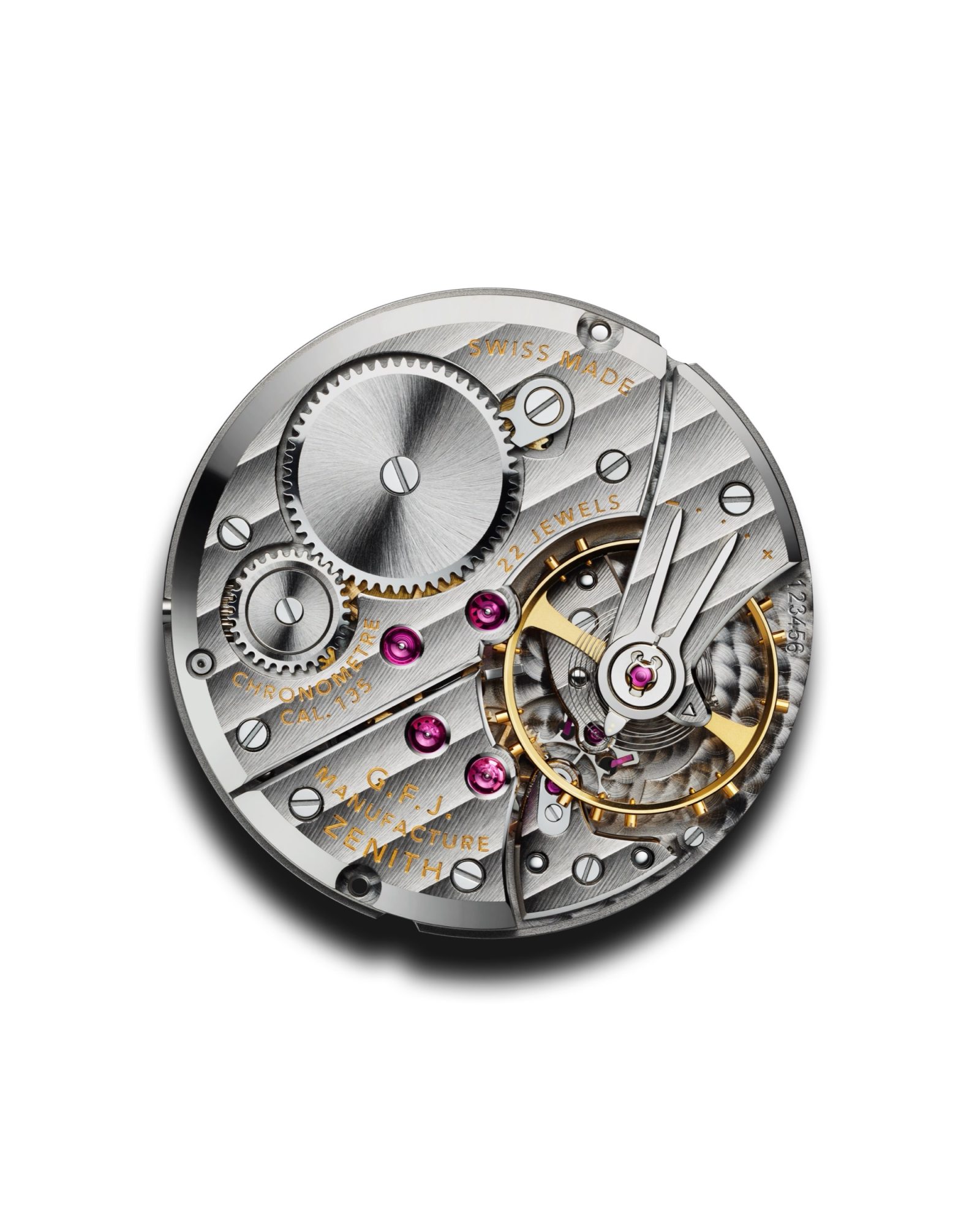 Pour ceux qui nous rejoindraient en cours de route : le Calibre 135 original a été développé à la fin des années 1940, spécifiquement taillé pour les concours de chronométrie des observatoires. Sa version de compétition, le 135-O, a raflé 235 prix de chronométrie, dont cinq premiers prix consécutifs à l’Observatoire de Neuchâtel entre 1950 et 1954. Un record qui n’a toujours pas été battu. Ce mouvement fait partie intégrante des 2 333 prix accumulés par Zenith au fil de son histoire, un palmarès qui a de quoi faire pâlir toutes les autres maisons…